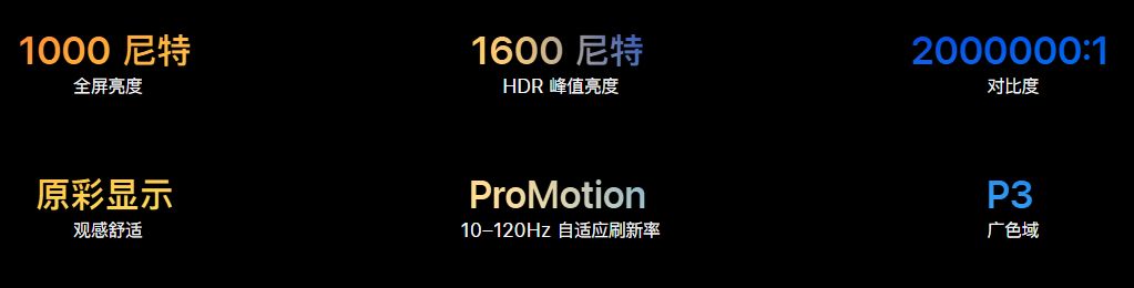 屏幕依旧配备双层OELD面板屏幕, 支持10Hz 至 120Hz ProMotion可变刷新率,1600nit HDR亮度。